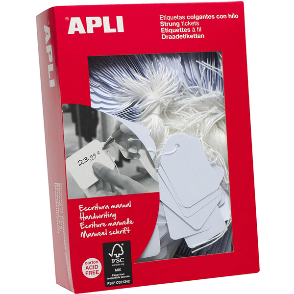 Perfect for adding a personalised touch to your items for pricing and product description Manufactured in 200g cardboard and a 100% polyester string Apli strung ticket is acid free and will retain the colour throughout its life Suitable for pricing and product description Ideal for craft or labelling retail merchandise With punched holes and string for convenient, easy attachment Acid free