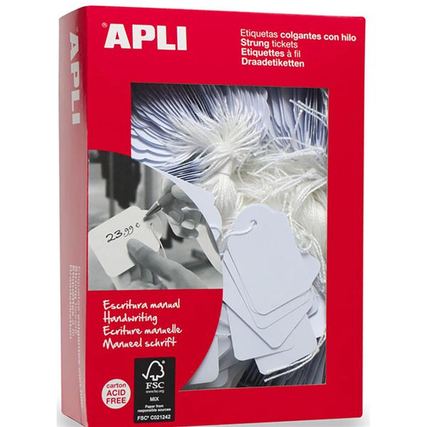Perfect for adding a personalised touch to your items for pricing and product description Manufactured in 200g cardboard and a 100% polyester string Apli strung ticket is acid free and will retain the colour throughout its life Suitable for pricing and product description Ideal for craft or labelling retail merchandise With punched holes and string for convenient, easy attachment Acid free