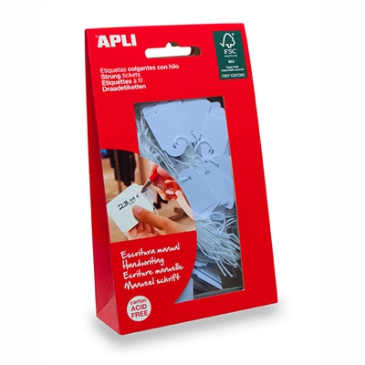 Perfect for adding a personalised touch to your items for pricing and product description Manufactured in 200g cardboard and a 100% polyester string Apli strung ticket is acid free and will retain the colour throughout its life Suitable for pricing and product description Ideal for craft or labelling retail merchandise With punched holes and string for convenient, easy attachment Acid free