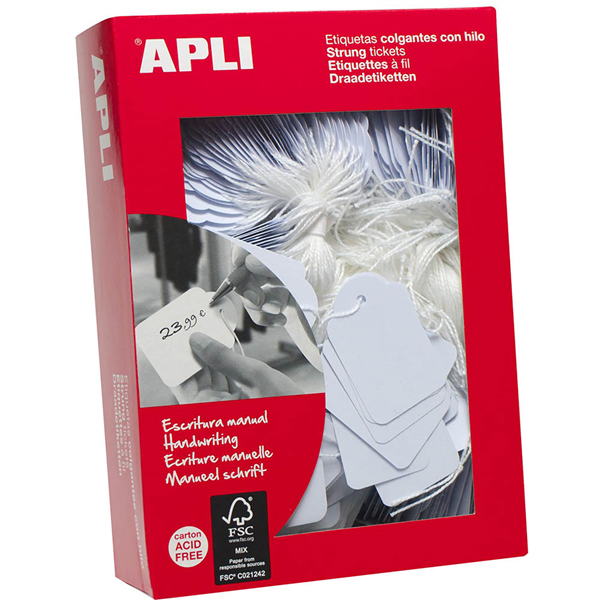 Perfect for adding a personalised touch to your items for pricing and product description Manufactured in 200g cardboard and a 100% polyester string Apli strung ticket is acid free and will retain the colour throughout its life Suitable for pricing and product description Ideal for craft or labelling retail merchandise With punched holes and string for convenient, easy attachment Acid free