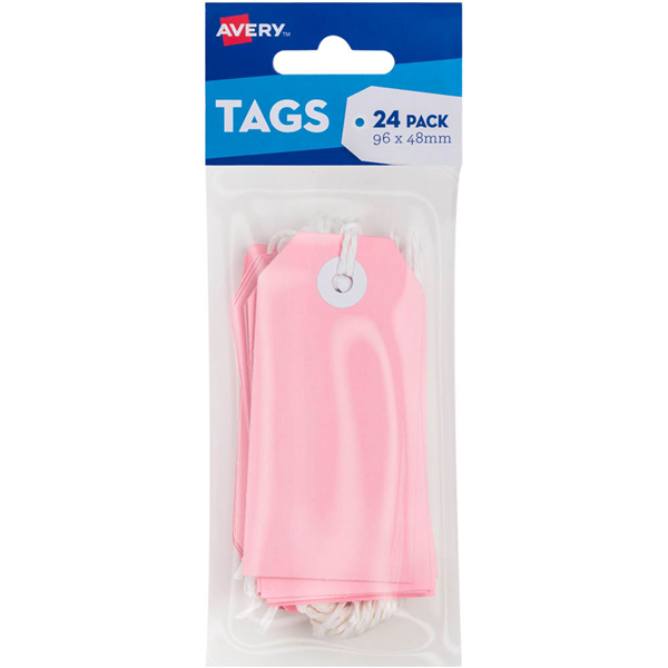 AVERY 13201 SWING TAGS WITH STRING 96 X 48MM PINK PACK 24