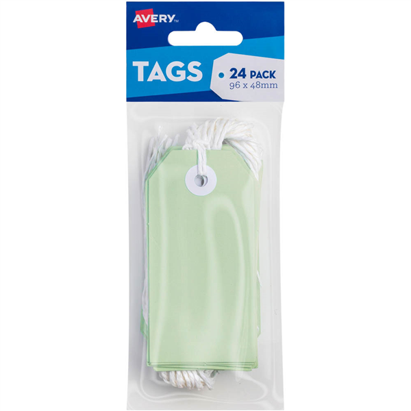 AVERY 13203 SWING TAGS WITH STRING 96 X 48MM GREEN PACK 24