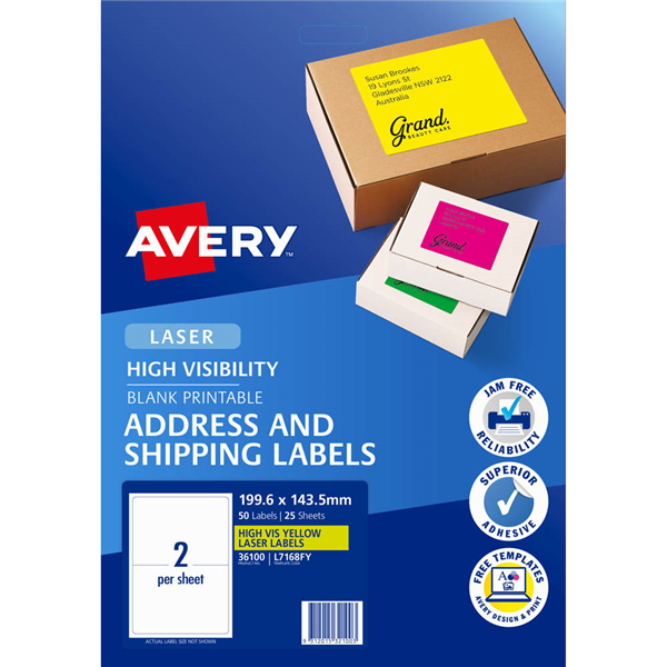 Use Avery Fluoro Labels to make something really stand out These fluoro yellow labels can be printed with your own message so they are great for labelling parcels and other important mail You can also choose from a range of other promotional labels in more eye-catching colours and shapes Simply use free Avery software to design and print your labels in minutes Fluoro coloured labels make your items highly visible and enable instant recognition Ideal for marking documents, and files that need special attention and for labelling products and packaging for selling or shipping Available in fluoro green, yellow, pink and orange Guaranteed Jam Free printing on laser printers Supported by free Avery templates available at www.averyproducts.com.au