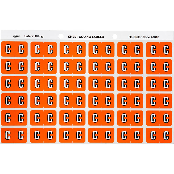 AVERY 43303 LATERAL FILE LABEL SIDE TAB COLOUR CODE C 25 X 38MM ORANGE PACK 180