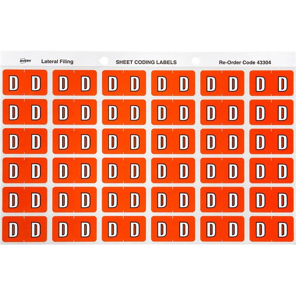 AVERY 43304 LATERAL FILE LABEL SIDE TAB COLOUR CODE D 25 X 38MM DARK ORANGE PACK 180