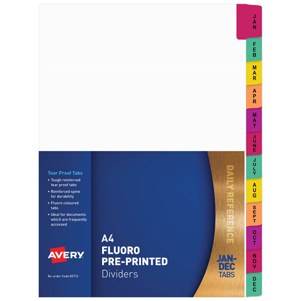 AVERY 85713 DIVIDER PLASTIC TAB JAN-DEC INDEX TAB A4 FLUORESCENT