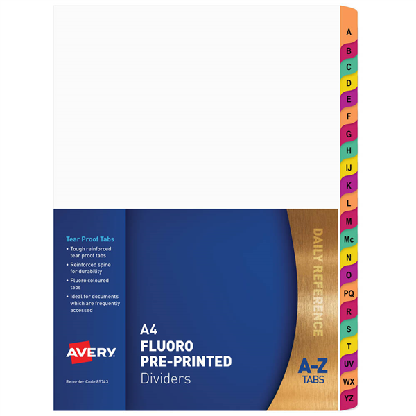 AVERY 85743 DIVIDER PLASTIC A4 A-Z FLUORESCENT TAB