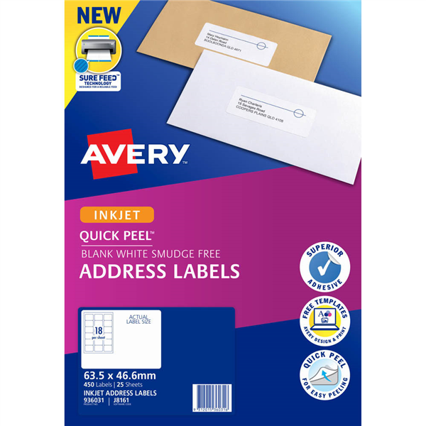 Quick Peel technology allows for quicker and easier detachment of labels from backing sheet Customise your labels with our free and easy-to-use template software; Avery Design and Print - available at averyproducts.com.au/print Inkjet labels are Smudge-Free for a professional finish Labels made with paper from sourced from sustainable forests