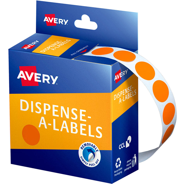 AVERY 937240 ROUND LABEL DISPENSER 14MM ORANGE BOX 1050