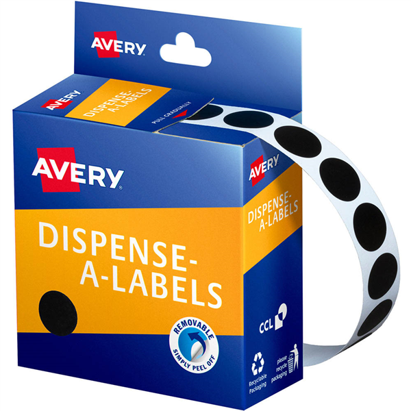 AVERY 937242 ROUND LABEL DISPENSER 14MM BLACK BOX 1050