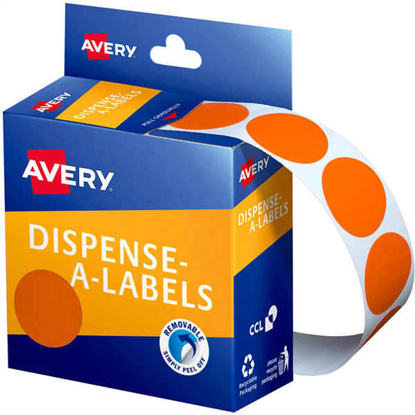 AVERY 937248 ROUND LABEL DISPENSER 24MM ORANGE BOX 500