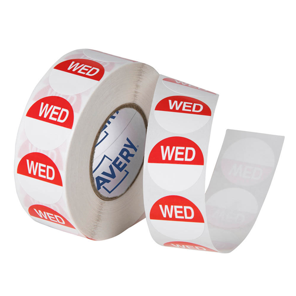 AVERY 937331 REMOVABLE DAY LABEL WEDNESDAY 24MM RED/WHITE BOX 1000