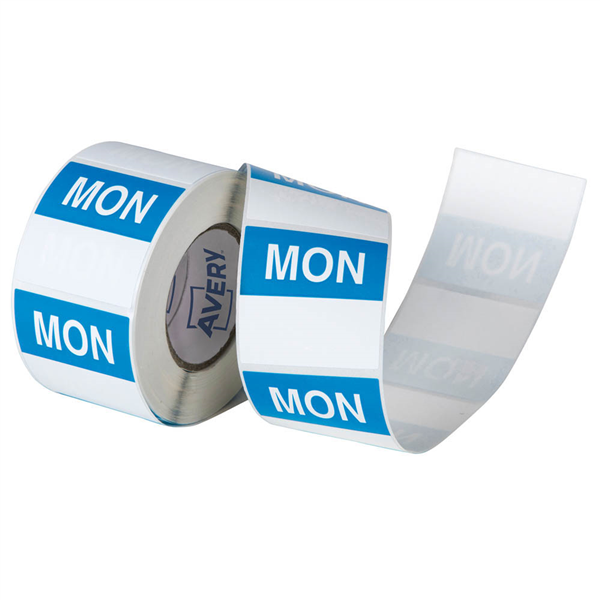 AVERY 937336 REMOVABLE DAY LABEL MONDAY 40 X 40MM BLUE/WHITE BOX 500