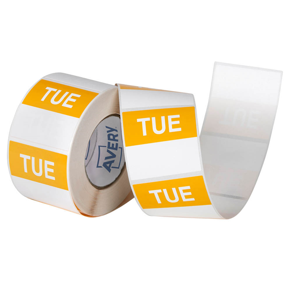 AVERY 937337 REMOVABLE DAY LABEL TUESDAY 40 X 40MM YELLOW/WHITE BOX 500