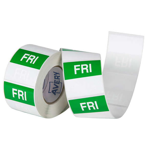 AVERY 937340 REMOVABLE DAY LABEL FRIDAY 40 X 40MM GREEN/WHITE BOX 500
