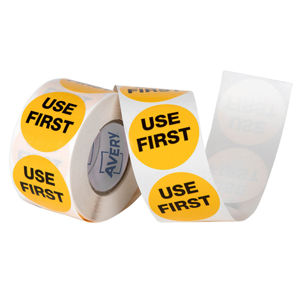 AVERY 937343 REMOVABLE USE FIRST LABEL 40MM YELLOW/BLACK BOX 500