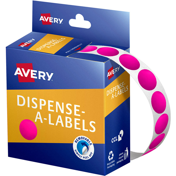 AVERY 937370 ROUND LABEL DISPENSER 14MM FLUORO PINK BOX 700