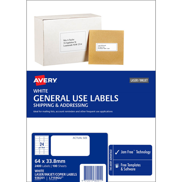 They can be used with black and white laser printers and copiers and also with all inkjet printers They deliver good quality results and it takes no time to design and print them using the free Avery software and templates Now supported by Microsoft Word and Avery software at www.averyproducts.com.au Now with Jam Free Technology for perfect labels every time Ideal for mailing lists, account reminders and other frequent use applications Suited to medium speed, black and white laser printers and photocopiers Made with paper from well- managed forests