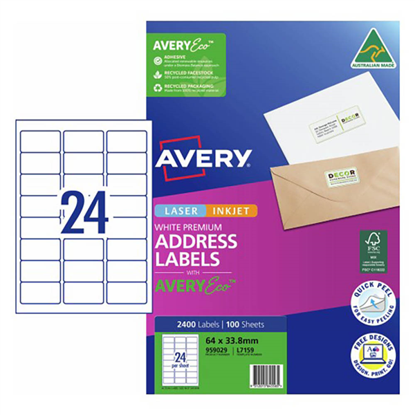 Quick Peel technology allows for quicker and easier detachment of labels from backing sheet Customise your labels with our free and easy-to-use template software; Avery Design and Print - available at averyproducts.com.au/print Special adhesive withstands the high heat of laser printers Labels made with paper from sourced from sustainable forests