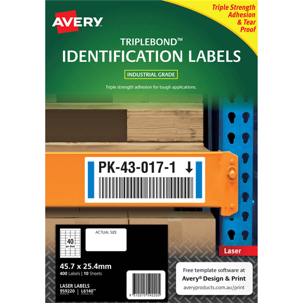 AVERY 959220 EXTRA STRONG TRIPLEBOND LABELS 45.7 X 25.4MM WHITE PACK 10