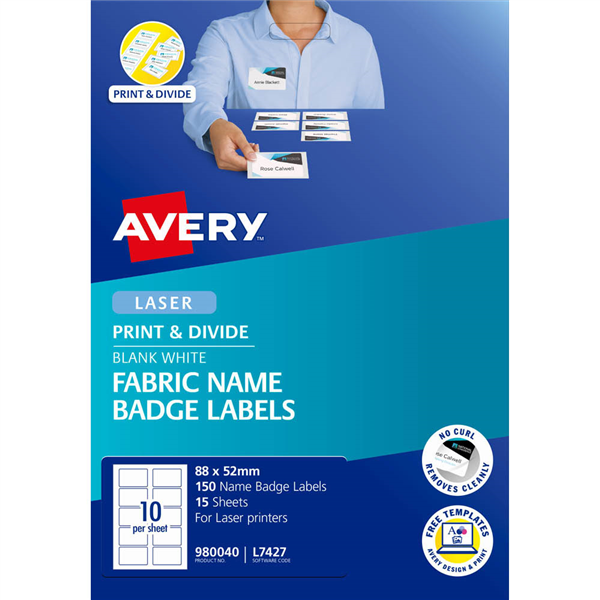 AVERY 980040 L7427 FABRIC NAME BADGE LABELS 10UP WHITE PACK 15