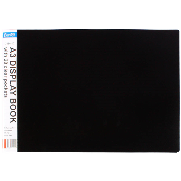 BANTEX DISPLAY BOOK NON-REFILLABLE LANDSCAPE SPINE INSERT 20 POCKET A3 BLACK