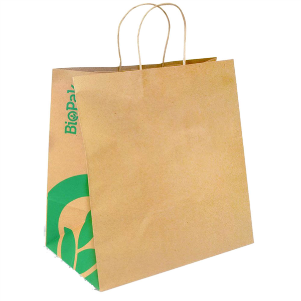 Strong, sturdy and can be stored easily making them ideal for takeaway They are home compostable, industrially compostable and reclyclable in kerbside recycling Available in twisted, flat and die-cut handles