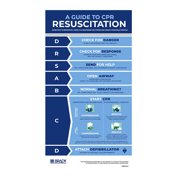 BRADY ADULT RESUSCITATION INFORMATION SIGN (CPR) 420 X 700MM POLYPROPYLENE