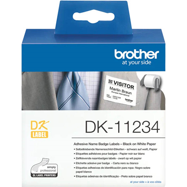 BROTHER DK-11234 ADHESIVE NAME BADGE LABELS 60 X 86MM WHITE ROLL 260
