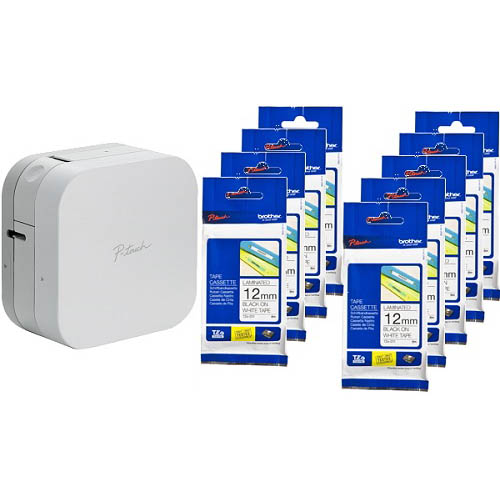 Brother PT-P300BT Cube Bluetooth label printer bundle with 9 x Brother TZe-231 12mm black on white tapes