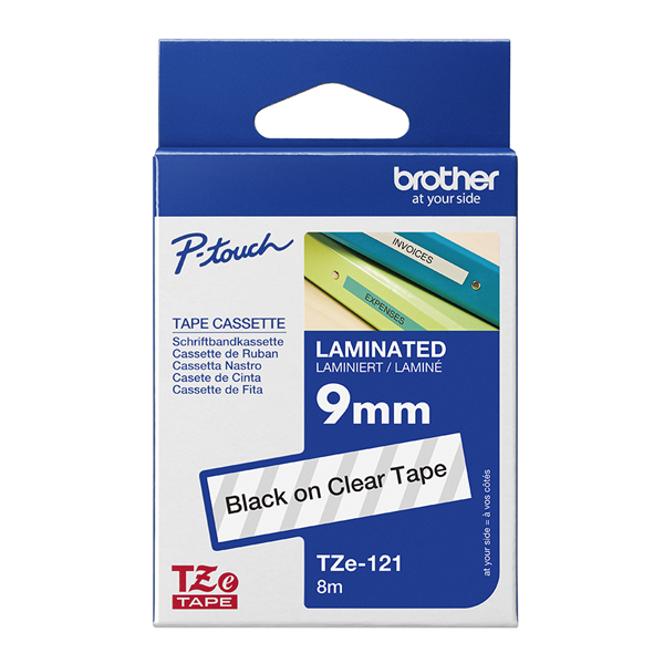 BROTHER TZE-121 LAMINATED LABELLING TAPE 9MM BLACK ON CLEAR