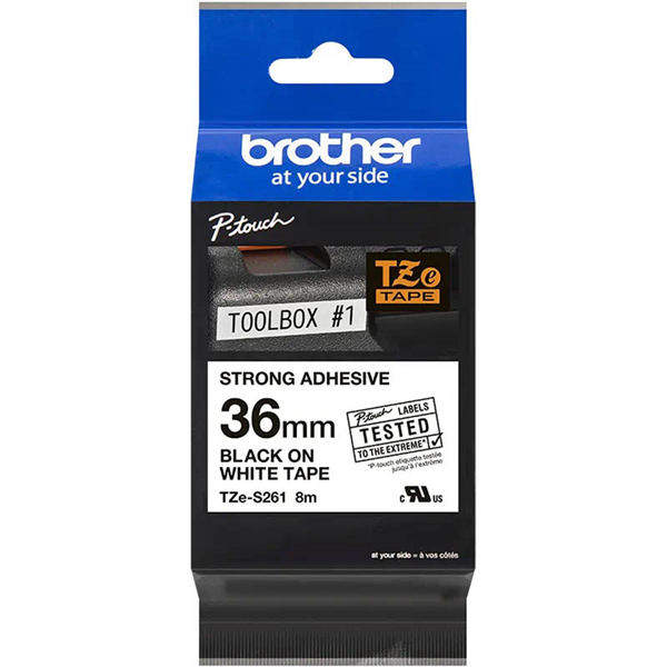 BROTHER TZE-S261 STRONG ADHESIVE LABELLING TAPE 36MM BLACK ON WHITE