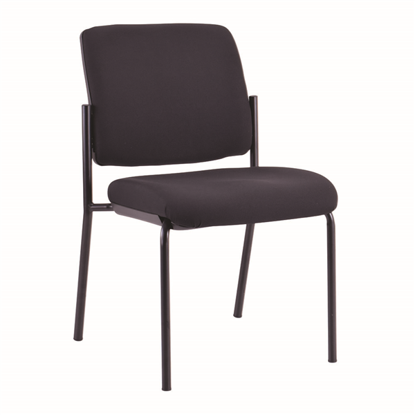 Featuring sleek lines and a black powder coated frame, this strong 4 leg chair is stackable and extremely comfortable It offers exceptional value and is an ideal choice for guest seating