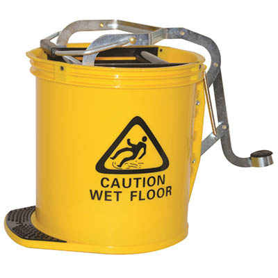 Mop bucket Heavy Duty metal wringer 16 L Ideal for industrial and domestic use Industrial grade heavy duty mop bucket with metal wringer Easy squeeze mechanism Non slip foot pedal Castor wheels for easy use around the workplace Colour coded to meet industry standards Spare parts available separately