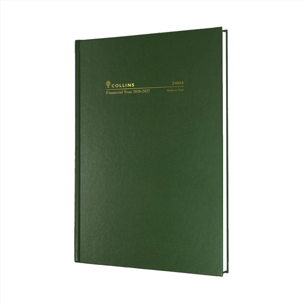 COLLINS 34M4.P40 FINANCIAL YEAR DIARY WEEK TO VIEW A4 GREEN