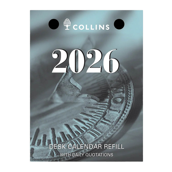 Daily dated refill featuring quirky and sometimes poignant quotations Australian and New Zealand public holidays 12 months calendar reference Top punch to fit Collin's desk calendar stands Stand not included