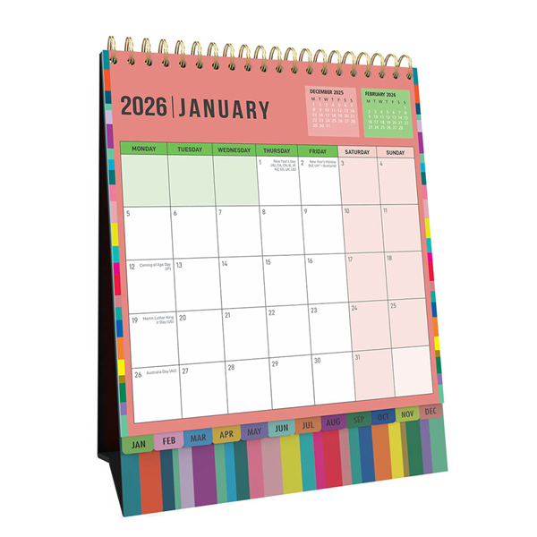 COLLINS EDGE RAINBOW DESK CALENDAR EDDC MONTH TO VIEW 220 X 175MM