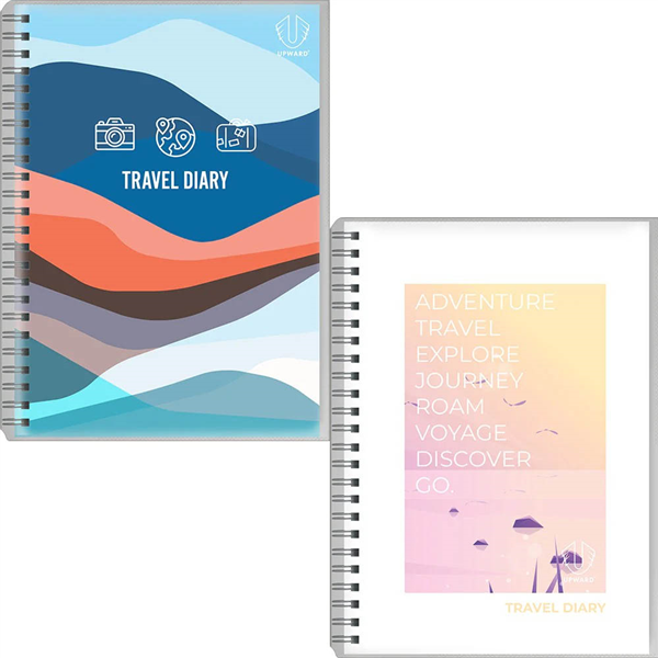 But it can also be overwhelming and disorganized at times That's why you need the 4239 Travel Diary This versatile and handy undated Upward Travel diary is just what you need when you're on the go It comes with double wire binding for easy page turning, and a clear PVC jacket to keep it protected when youre out and about It's also FSC certified and comes in four cover designs to choose from It's packed with full of information and essential for all travelers Colors are assorted, so you'll get a surprise We aren't able to take specific color requests, but we promise each one is just as great