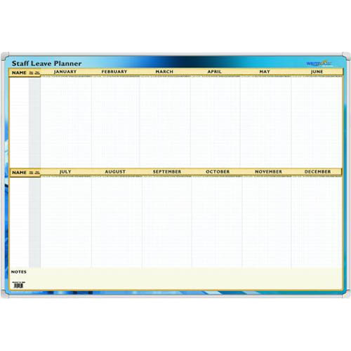 A perpetual planner with write-on/wipe-off surface. Ideal for planning staff holidays, training courses, shift work and many more work activities