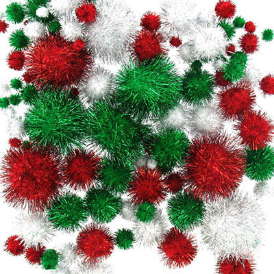 COLORIFIC POM POMS GLITTER CHRISTMAS ASSORTED PACK 138