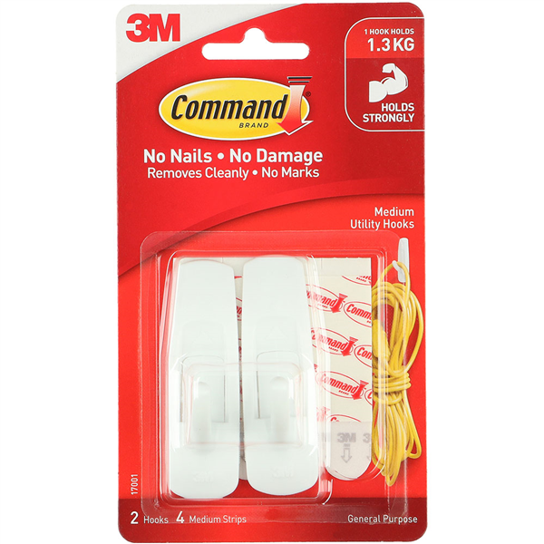 Damage-free hanging Holds strongly and removes cleanly Easy to apply and remove Works on a variety of surfaces Ideal for organising and decorating any home or office environment Contains 2 medium hooks, 4 medium strips