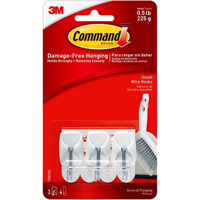 COMMAND ADHESIVE UTENSIL HOOK WHITE PACK 3 HOOKS AND 4 STRIPS