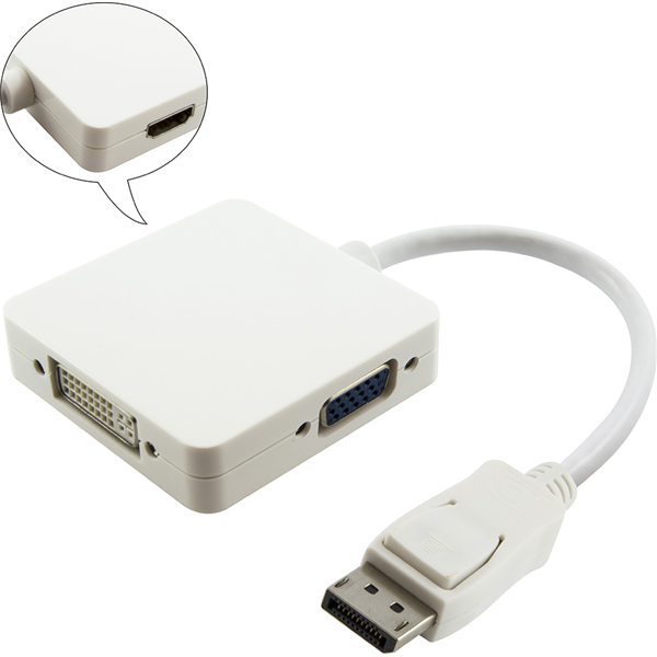 This universal DisplayPort to VGA + DVI + HDMI adapter ensures you will always have the right connection