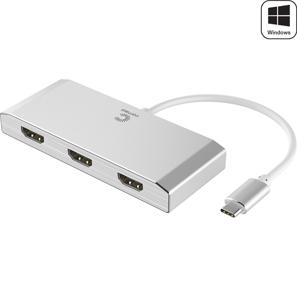 Features 1 x USB-C male connector 3 x HDMI female connectors Supports duplicate or extend mode for Windows 2 monitors support 4K Ultra HD 3840 x 2160 at 60Hz each 3 monitors support one at 4K Ultra HD 3840 x 2160 at 60Hz and two at 3840 x 2160 at 30Hz Host powered - no additional power required Plug and Play - no drivers or software required