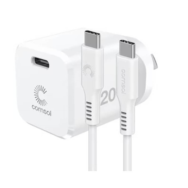 COMSOL USB-C WALL CHARGER 20W + USB-C CABLE 1.2M WHITE