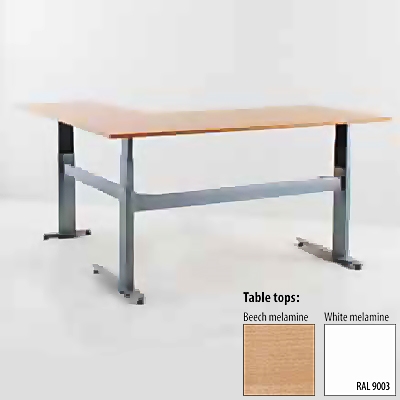 • This beautifully designed L-shaped desk is both stable and functional, and covers all the basic needs for a height adjustable desk