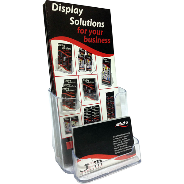 • All-in-one display featuring a business card holder attached to the brochure holder