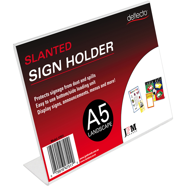 DEFLECTO SIGN HOLDER SLANTED LANDSCAPE A5 CLEAR