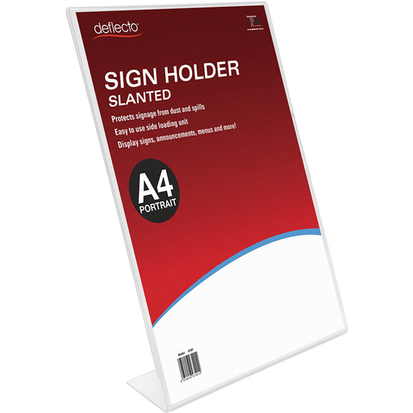 DEFLECTO SIGN HOLDER SLANTED PORTRAIT A4 CLEAR
