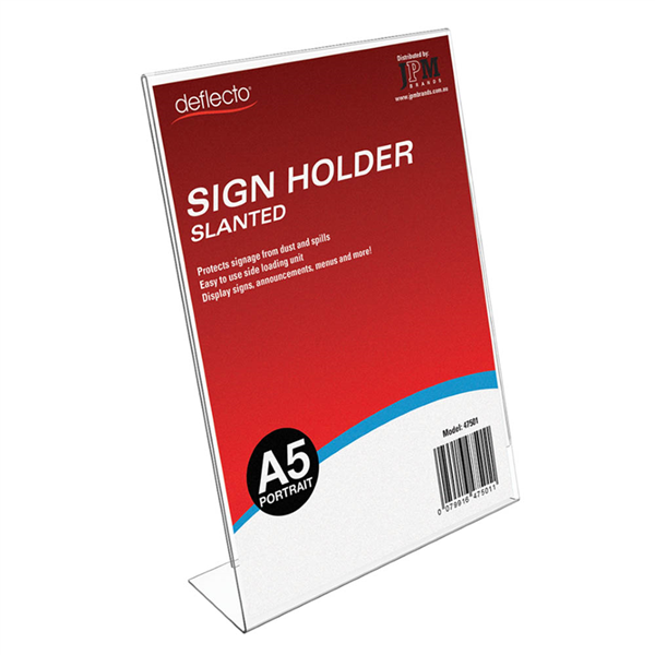 DEFLECTO SIGN HOLDER SLANTED PORTRAIT A5 CLEAR